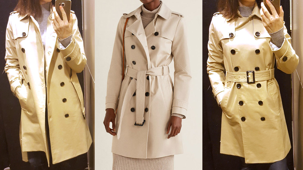 A klasszikus fazonú, combközépig érő, világos bézs kabát mind szabását, mind anyagát tekintve tetszett. Egyedül az öv irgalmatlanul hosszú rajta, ha „rendesen” akarja valaki megkötni. Máskülönben kényelmes viselet volt, igazi örök darab, ami évek múltán sem fog kimenni a divatból. Méretezése megfelelő volt, 36-os valómra a 36-os kabát pont illett.