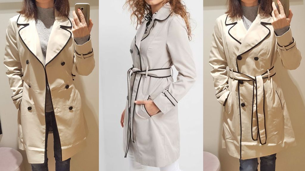 A Mango kabátjához képest egy kicsit gyűrődősebb anyagúnak láttam ezt a ballonkabátot, ami szintén a klasszikus vonalat képviseli, igaz a kontrasztos szegély ad egy kis extrát a dologhoz. Élőben mindazonáltal csinos, szépen kidolgozott trencskó, pontos méretezéssel; begombolva is kényelmes volt, nem túl bő, nem túl szűk. Fazonjának köszönhetően szintén sok évig csinos kabátként szolgálhat.