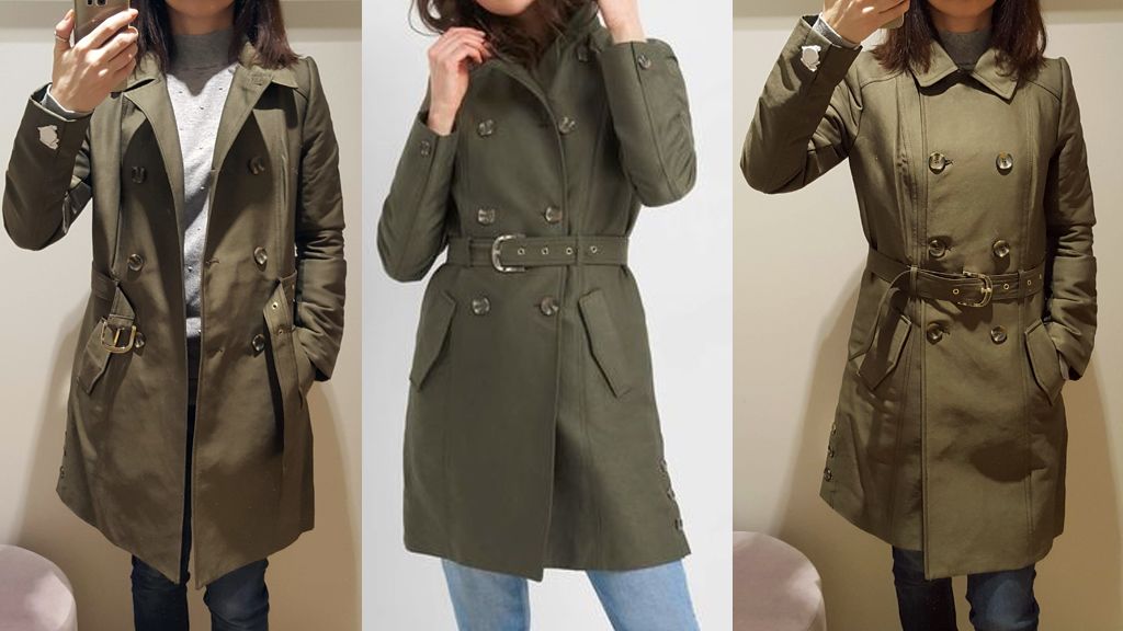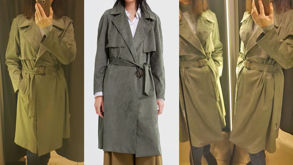 Az egyik legjobb kabát volt ez az olajzöld trencskó, amit volt szerencsém próbálni körutamon. Szuper az anyaga, szép a varrása, kidolgozottsága és kényelmes viselet is. Tetszettek a rátétek, a gombok, megfelelő volt a hossz és a bőség is – igaz, ebből S helyett az XS is elegendő volt, az S-es méretnél az ujjhosszal már gondok adódtak. Ha el akarnátok szakadni a bézs vonaltól, de mégiscsak maradnátok a klasszikus, sokáig divatos fazonok mellett, ezt a kabátot érdemes lehet megpróbálni.