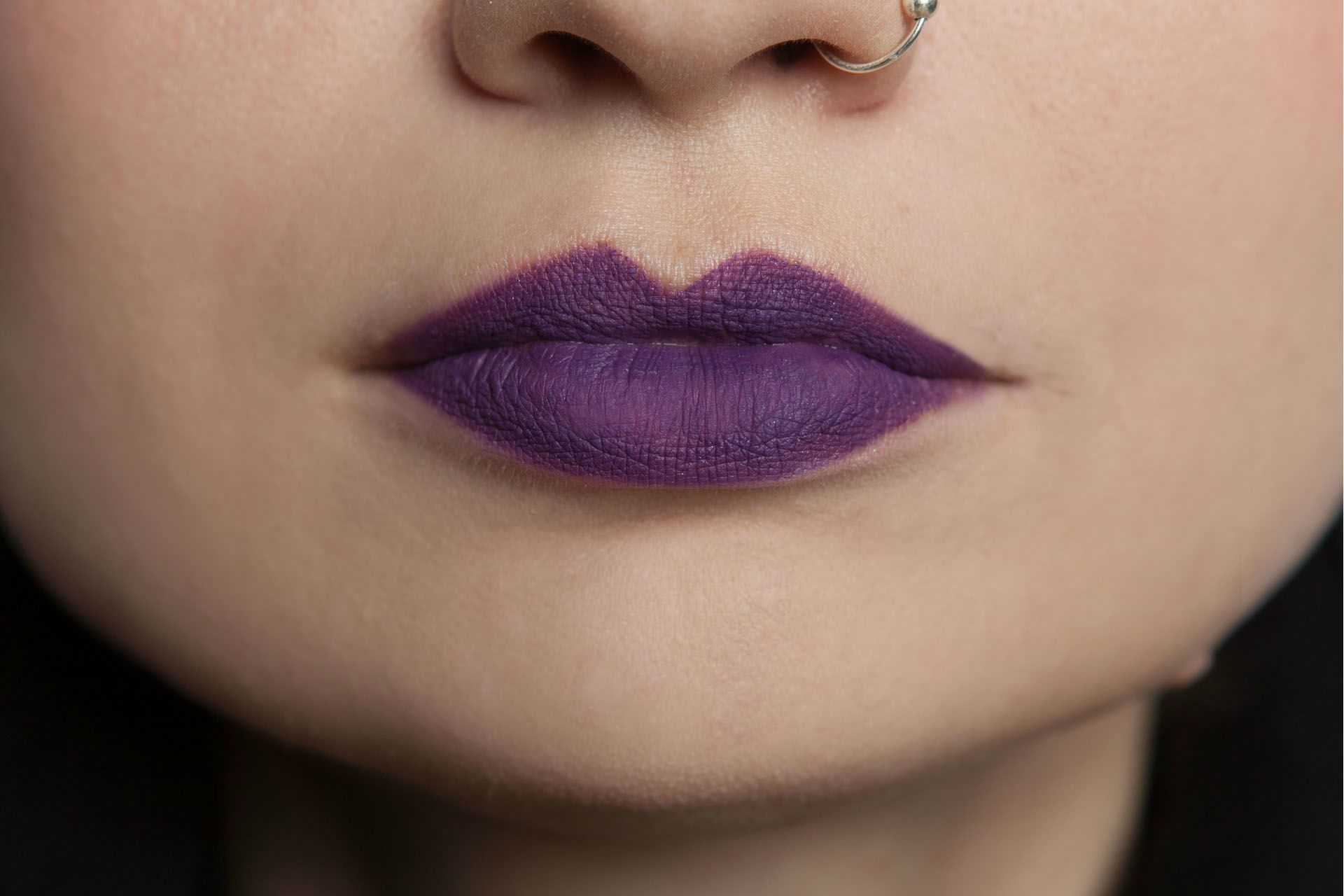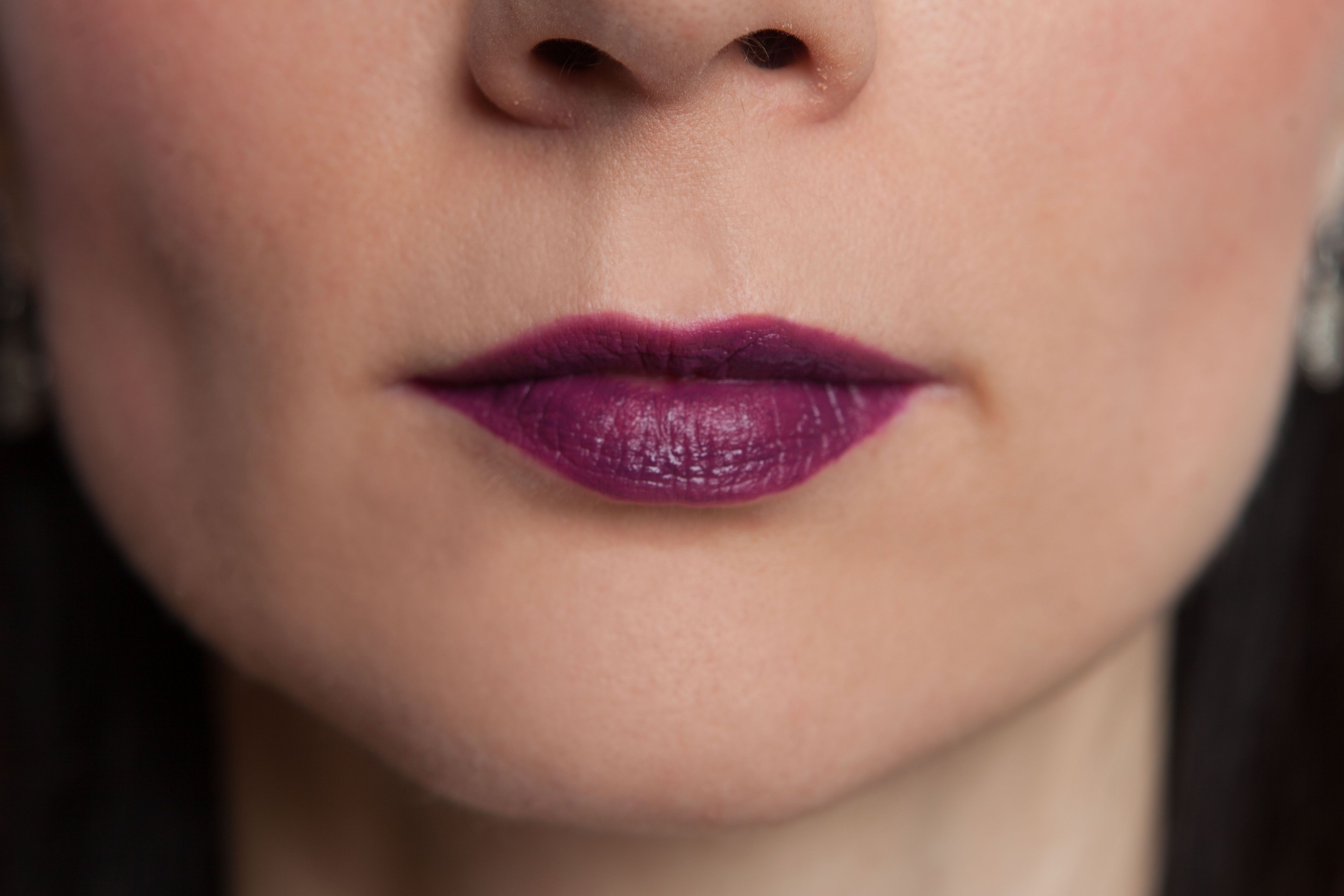 Ha nem bogyós gyümölcsös vagy barnába hajló, hanem amolyan ütős, karakteresen lila rúzst keresel, akkor az Inglot HD Lip Tint matt folyékony ajakrúzs 19-es árnyalata lesz a barátod. Felvitelkor csínján kell bánni vele, mivel meglehetősen csúszós, viszont annál gyorsabban szárad. A szivacsos applikátorral a magam részéről kimentem itt-ott a vonalból, amit utólag sminklemosóval korrigáltam. Illata és íze egyaránt savanykásabb gyümölcsteához hasonló. A képen látható fedéshez két rétegben vittem fel. Érdemes volt megküzdeni vele, ugyanis cserébe derekasan bírta az egész napot, beleértve az étkezéseket is. Este sminklemosóval is kissé dörzsölgetni kellett, hogy teljesen lejöjjön.