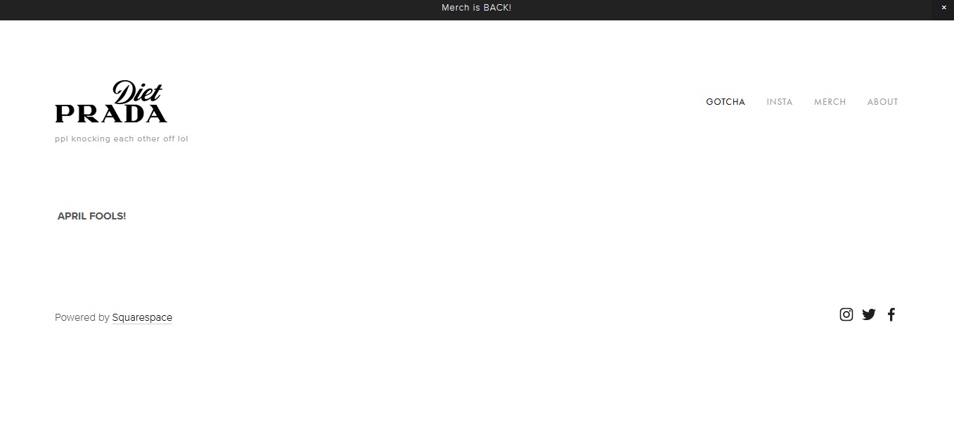 A viccnek tízezrek dőltek be, még Bella Hadid topmodell is rákérdezett: „Ez csak egy áprilisi tréfa, ugye, srácok?” És valóban az volt. Az „eBay-oldal” ugyanis lazán átvezetett mindenkit a Diet Prada célzott weboldalára, ahol csak ennyi fogadta az ijedőseket: