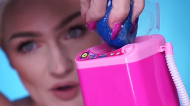 Játék mosógéppel mosta ki a sminkszivacsát a bloggerlány, sztár lett belőle. (Fotó: YouTube/Tiffany Lynette Davis)