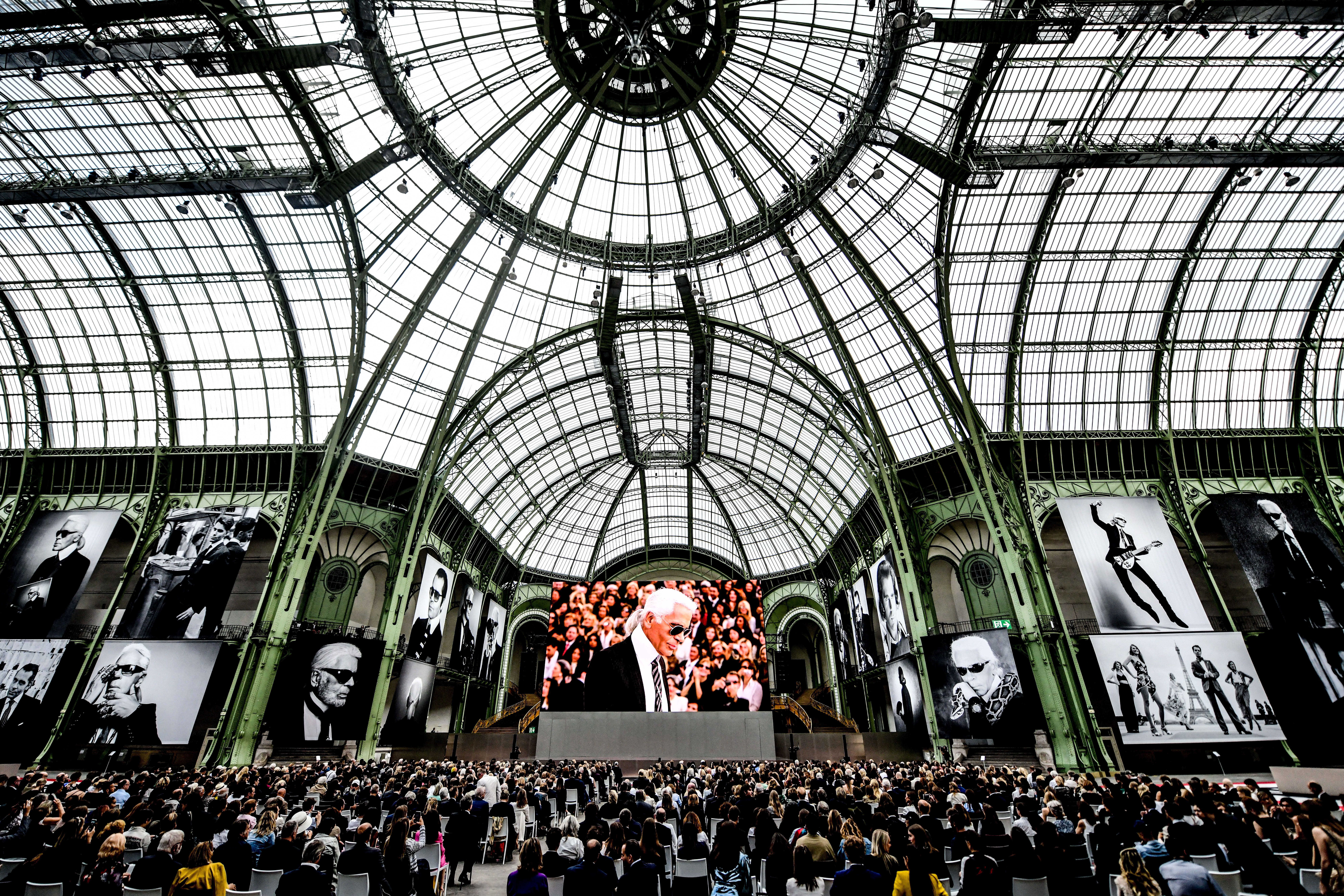 Most az ő óriási fotói díszítették a falakat, felidézve pályája állomásait a Chanelnél, a Fendinél és saját márkájánál – amelyek az eseményt is szervezték. A csaknem kétórás rendezvény gyönyörűen összefoglalta, mi mindent szeretett Lagerfeld az életben, mit tartott fontosnak és hogyan viszonyult másokhoz. Beszédet tartott Tilda Swinton, Cara Delevingne modell verset mondott, Helen Mirren a tervező könyvéből olvasott fel, Pharrell Williams pedig táncba hívta énekével a 2500 fős tömeget.