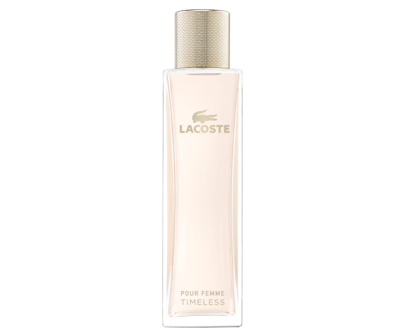 A Lacoste Pour Femme Timeless elegáns, áramvonalas, áttetsző üvege ragyogó, kifinomult illatot rejt, amely a nőiesség időtlen jegyeit emeli ki. Olivier Cresp mesterparfümőr két rózsaesszenciát hozott össze, amelyek keresztezik egymás útját, és finoman egymáshoz érnek egy pillanatra. A fehér virágcsokor jázminnal és gardéniával örömmel fogadja az újonnan érkező narancsvirág abszolútumot, amely ragyogó, üde, zöld jegyekkel itatja át az illatot. A pacsuli flörtöl az elbűvölő tömjénnel, és fokozza a szantálfa érzéki melegségét, amely a női Lacoste illatok egyik fő ismertetőjegye.