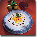 A megtisztított vöröshagymát finomra, a megmosott gombát és a sonkát metéltre vágjuk. A makarónit forró sós vízben feltesszük főni. Amíg a makaróni fő, az olvasztott vajban a vöröshagymát megpirítjuk, hozzáadjuk a gombát és a sonkát, összekeverjük és a paradicsompürét rátéve sózzuk, borsozzuk és együtt lepirítjuk. A megfőtt – figyeljünk arra, hogy ne főzzük szét a makarónit – makarónit és a sajt egyik felét rászórva összekeverjük. Tálaláskor a tál egyik oldalára felhalmozzuk a makarónit, tetejét megszórjuk a maradék sajttal, mellérakjuk a kisütött szeleteket, amelyekre egy-egy szelet hámozott citromszeletet tegyünk.