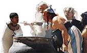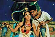 A büszke királynő egy idő után megunja az öntelt Caesar piszkálódó megjegyzéseit, és fogadást köt vele: ha Kleopátra emberei képesek III (három) hónap alatt felépíteni egy csodás palotát a sivatag közepén, Caesar nyilvánosan elismeri, hogy az egyiptomi a legcsodálatosabb nép a világon.
