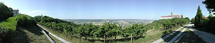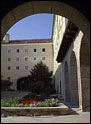 A modern főkapun belépve jobbról a főapátság barokk épülete, balról a gimnázium és diákotthon oszlopos bejárata fogad bennünket. A főapátságban több mint 40 szerzetes él, az iskolában tanuló fiúk száma 320 körül mozog. Az udvaron tovább sétálva jutunk a belső udvarba, a neoklasszicista homlokzat már a középkori épületrészt takarja.