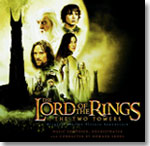 „A Két Torony” zenéje az első részhez hasonlóan („May It Be” – Enya) nagyon plasztikus, jól szemlélteti, vagy inkább életre kelti a legendás helyszíneket, eseményeket, a Jó és a Rossz harcát.