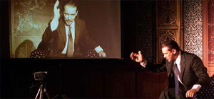 Egyszemélyes előadást rendezett az Aranytíz Teátrumban Pozsgai Zsolt, mégis úgy tűnik, mintha másodmagával lenne a színpadon a Jávor Pált alakító Szőke Zoltán. Monológját ugyanis kamerába mondja a színész. Őt magát profilból látjuk, a háttérben lévő kivetítőről viszont szembenéz velünk.