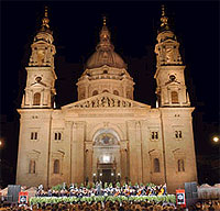A Szent István-bazilika előtti programról megtudtuk: július 8-ától öt estén, öt szimfonikus zenekar ad koncertet, 20.30 órai kezdettel.