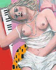 Illés Balázs (27) 2001-ben fejezte be tanulmányait a Magyar Képzőművészeti Egyetem képgrafika szakán. Eddig tizenhárom csoportos és két egyéni kiállításon mutatta be műveit. Képein a groteszk szemléletmód és az erotika találkozik. Most bemutatott festményeiben felfedezhető a bécsi szecesszió nagy alkotóinak való tiszteletadás, s egyben ennek a látványvilágnak a huszonegyedik századi újraértelmezése, újraértékelése.