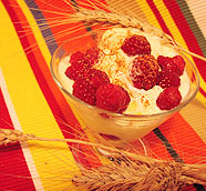 Tegyünk a kehelybe 2 kanál málnát. 3 gombóc madártej jégkrémet halmozzunk a tetejére, és szórjuk meg ismét a finom, zamatos gyümölccsel. Ha a tetejét fahéjjal ízesítjük, igazán különleges ízt kapunk!