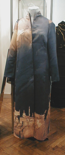 Figyelmet érdemel a svájci tervező, Adam Brody kabátja is, az izraeli tájat ábrázoló egyedi nyomtatású mintájával, és a mintát kihangsúlyozó egyszerű, ám finom vonalú szabásával.