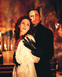 A film zenéje felett egyszerűen nem tudok napirendre térni: tényleg az az Andrew Lloyd Webber írta volna Az operaház fantomját, aki a Macskákat és a Jézus Krisztus Szupersztárt is jegyzi? Persze a szándékot érteni vélem, az opera falai között játszódó zenedarab operai műfajokban csendül fel: a vígoperai részletek, a balettkarral súlyosbított táncbetétek és áriák; a különböző zenei műfajok azonban sehogy sem illeszkednek a számomra leginkább szinti pop benyomását keltő fő motívumhoz, konkrétan szenvedek, mikor a vezérdallam vissza-visszatér.