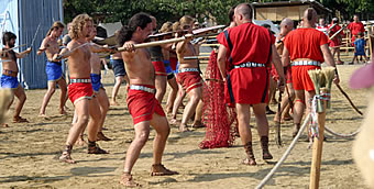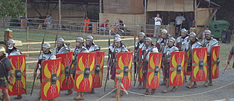 Az ókori Savaria ma is meglévő falai közt a római város civil élete elevenedik meg: kézművesek, kereskedők, rabszolgaárusok népesítik be a Romkertet, hogy aztán egy jó üzlet után bárki leöblíthesse torkát a korhű tavernában.
