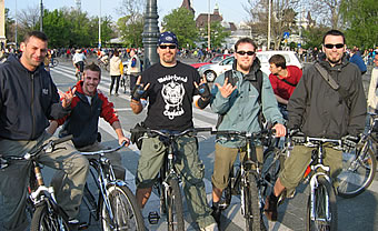 közismert Critical Mass kerékpáros felvonulást. A felvonulás célja a kerékpározás népszerűsítése, illetve annak a ténynek a demonstrálása, hogy a két keréken közlekedés nem holmi különc úri passzió, hanem nagy létszámú tényező, amivel nemcsak a mindennapi közlekedésben, hanem a városrendezési, útfelújítási terveknél is számolni kellene.