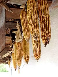 A kukorica feldolgozása a ház körül: morzsolás. darálás, őrlés, szárvágás.