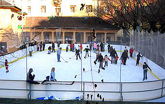 A téli szezonban szokatlanul hosszú nyitvatartási idővel állnak a vendégek rendelkezésére: reggel 07.00 és este 12.00 között korcsolyázhatunk. A jégpályához természetesen tartozik egy büfé, ahol csomagolt élelmiszereket, üdítőt és teát árulnak, de van itt korcsolyakölcsönző és élező is.