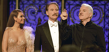 Steve Martin nem csak Jean Clouseau felügyelőt alakítja, hanem részt vett a forgatókönyv megírásában is, és talán éppen ezért illik hozzá ennyire ez a szerep. Nem halvány másolata a korábbi Clouseau felügyelőnek, amit Peter Sellers játszott, hanem saját magára szabta, és saját iróniájával töltötte fel. Az improvizáció hevében született poénokat csak akkor vették fel és kerültek a filmbe, ha a stáb hónapokkal később is képes volt rajtuk röhögni.