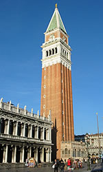 hatalmas bátyját, az eget karistoló Harangtornyot, a Szent Márk-bazilikát és a Doge-palotát. (A Doge-palota másik oldalán pedig a Sóhajok-hídját.) A tér tenger felőli nyílásánál két hatalmas gránit oszlop áll, amelyeket még az egyik keresztes háborúból Michieli doge hozott. Ötven évnek kellett eltelnie, mire egy ügyes mester fel bírta állítani a robosztus oszlopokat, és az örvendő doge megengedte, hogy a mester maga válassza ki jutalmát. Abban az időben tiltott volt a szerencsejáték, és a szemfüles mester kérése nem volt más, minthogy a két oszlop között játéktanyát tarthasson fent. Mivel ígéretről volt szó, nem lehetett mit tenni, és a városi tanács sokáig tűrte, hogy orra előtt bűnös üzelmek folyjanak, egészen addig, amíg az egyik tanácstagnak eszébe nem jutott, hogy a kivégzettek holtestét a két oszlop közé akasszák fel. Erre persze a játékosok elszéledtek, sőt, a babonás velenceiek még most is kerülik a térnek ezt a részét.