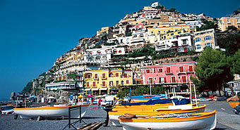 A hegyoldalban teraszosan aláereszkedő Positano a maga nemében páratlan látványt nyújt, és kétségkívül a legfestőibb és legtöbbet fotózott parti városka is egyben. Mielőtt idelátogatunk, nem árt edzésbe hozni mozgástól elszokott lábizmainkat, ugyanis a salernói öböl fölé magasodó, szinte már-már függőleges sziklafalra épült városban lépcsők tömkelegével találjuk szembe magunkat. Az élénk színűre festett házikók teraszosan sorakoznak egymás fölé, és szinte belesimulnak a háttérül szolgáló hegyoldalba. Narancs- és citromkertjei festőien szépek, teraszairól pedig egyedülállóan látványos panorámában lehet részünk, ha kitekintünk az azúrkék tengerre és a szűk öbölre. Positano jószerével egyetlen látnivalója a kicsiny Santa Maria Assunta templom, melynek majolikakupolája amely technika egyébként az egész környék templomépítészetét jellemzi – ragyog a napfényben.