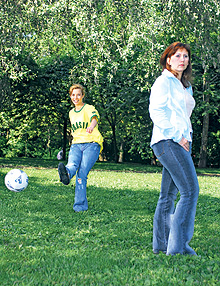 a kocsmákban, a járműveken, az utcán vagy bárhol, ahol férfiak vannak. A foci ugyanis az a sportág, amihez minden férfi ért. Mármint szerintük. Talán a génjeikben hordozzák az emlékezőtehetséget, amivel képesek felidézni akár azt is, hogy a négy évvel ezelőtti bajnokságon az argentinok hányadik percben lőtték a mindent eldöntő gólt. A legtöbbjük álmából felkeltve is tudja ezt, mi meg már annak is örülünk, ha képesek vagyunk megjegyezni a párunk kedvenc csapatát vagy a mezük színét. A középhaladók esetleg egy-egy helyesebb játékost is felismernek a pályán, de ennél többre általában nem vagyunk kíváncsiak a futballból. Igaz, az utóbbi években gyarapodik a lányokból álló szurkolótábor, ha másért nem, hát a formás férfihátsók látványa miatt. (A gyártók ki is használták a lelkesedésünket, már nőknek is készítenek szurkolói mezeket.)