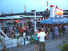 A Holdudvar Margitsziget az egykor jobb napokat látott Margitszigeti Casino romjait értelmezi újra, úgy általában igen kellemes stílusban, bár én a narancssárga lampion jellegű képződményeket nehezen tudom megbocsátani. Szerencsére a feltörekvő yuppie nemzedék nem ilyen kőszívű. Tévednek azok, akik sötét romkocsmára számítanak elszállt arcokkal és elszállt zenével. Inkább a fizetőképes közízlésre apellál a vendéglátóipari szórakozóhely, ahol véletlenül sem törik ki a trendi papucs sarka. Cinizmusom ellenére be kell vallanom, hogy bár nem gazdagítom a yuppiek táborát, igen kedvelem a Holdudvar hangulatát. Szeretem az éjszakai levegő illatát, a szabadban felállított asztalokat, a régi casino emlékét, az autók és a türelmetlen város távolságát.