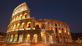 Rómát a Tiberis folyó szeli ketté észak-déli irányban; a fő látnivalók az i. e. 271-ben épült városfal által határolt területen helyezkednek el, a fal és a kapuk nagy része ma is eredeti állapotában áll. A Colosseumot, Róma egyik fő jelképét kikerülni se lehet; a több mint 1900 éves amfiteátrum éjjel-nappal lenyűgöző látvány, csakúgy, mint a Forum Romanum oszlopcsarnokának maradványai, a Capitolium és a Pantheon.