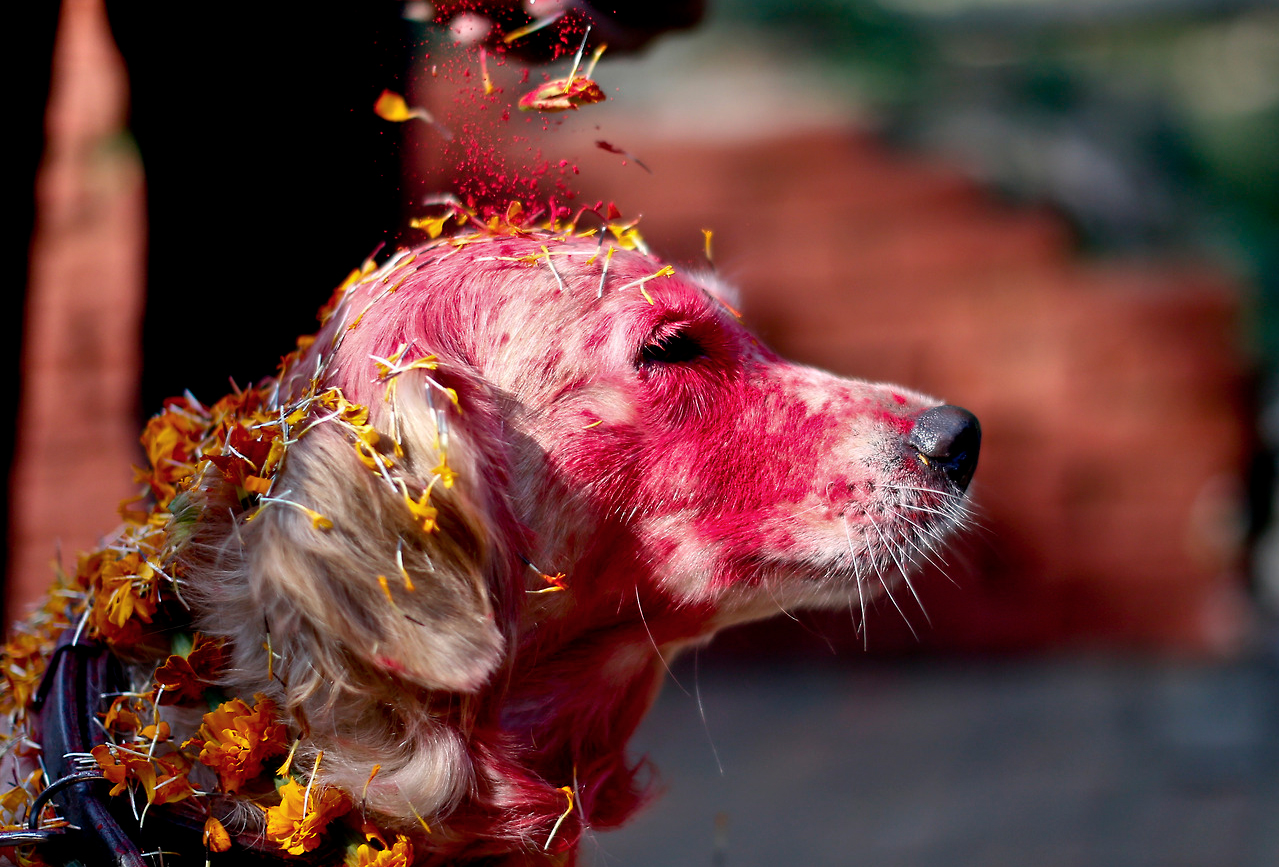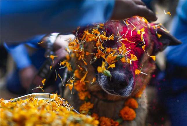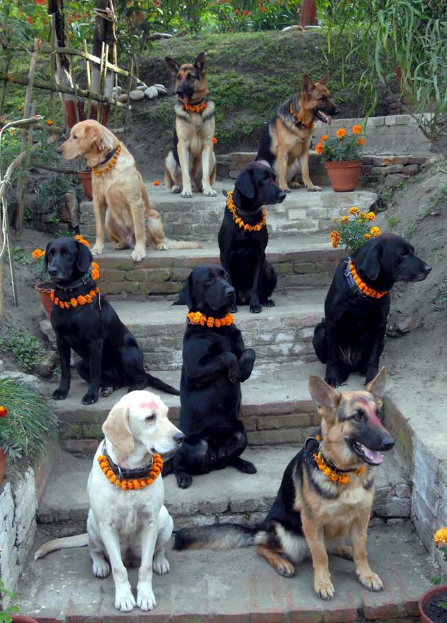 A nepáli ünnepen, amit Diválinak neveznek, az emberek megköszönik a kutyák odaadó szeretetét és hűségét.