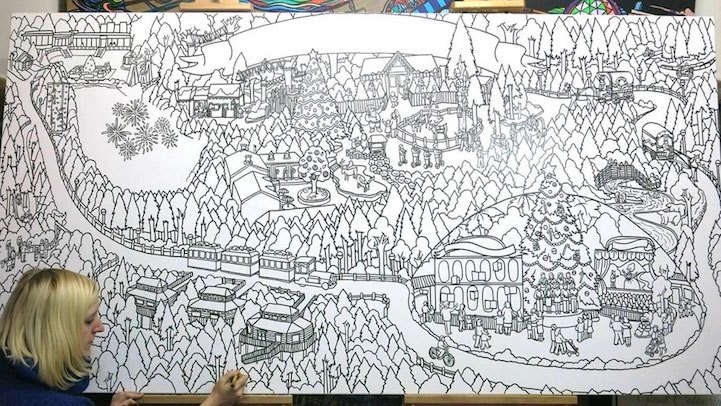 Amióta már a felnőttek is fel merik vállalni, hogy rajongásuk tárgya nem más, mint a kifestő, beindult a felnőtteknek szánt kifestők gyártása: már nemcsak kifestőkönyvek, de gigantikus falak is várják a színezni vágyó nagyokat. Maria Leyden és Chris Mason művészek fejéből pattant ki a zseniális ötlet, hogy megrendelésre óriás kifestőalapokat készítenek, amelyeket aztán akár otthon, akár a munkahelyen vagy csapatépítő tréningeken ki lehet színezni.