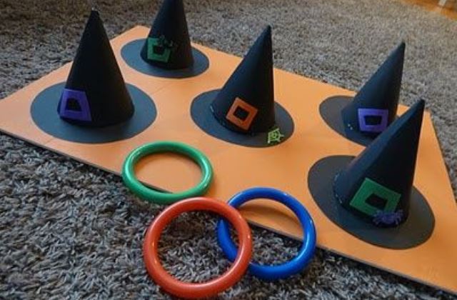 A karikákat kell a gyerekeknek a kalapokra dobniuk, körönként három dobásuk van. A gyerekek számától függ, hány kört játszanak. A legközelebb eső kalapok érhetnek 5-5 pontot, míg a messzebb, takarásban lévők 10-10 pontot. Aki a legtöbb pontot dobja, az lesz a halloween buli karikás játékának a győztese.