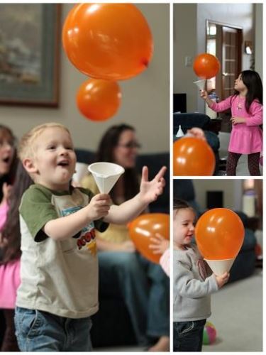 Tetszőleges színű kartonokból készíts akkora méretű tölcséreket, amelyek széles felén megállnak a halloween partyra felfújt léggömbök. A gyerekek feladata, hogy próbálják más másik kezük segítsége nélkül a narancs színű lufikat a tölcsérrel elkapni. Az győz, akinek ez a nem is olyan egyszerű feladat a legtöbbször sikerül.