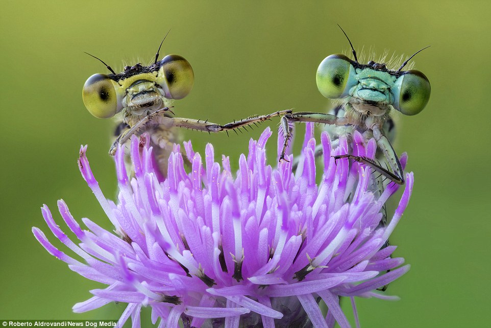 Roberto Aldrovandi olasz fényképész elárulta, hogyan lehet ilyen hihetetlenül szép képeket készíteni. A 46 éves fényképész szerint a trükk az, hogy késő tavasszal, hajnalban kell kimenni a természetbe, mert akkor van a legtöbb esély a szitakötőket lekapni.