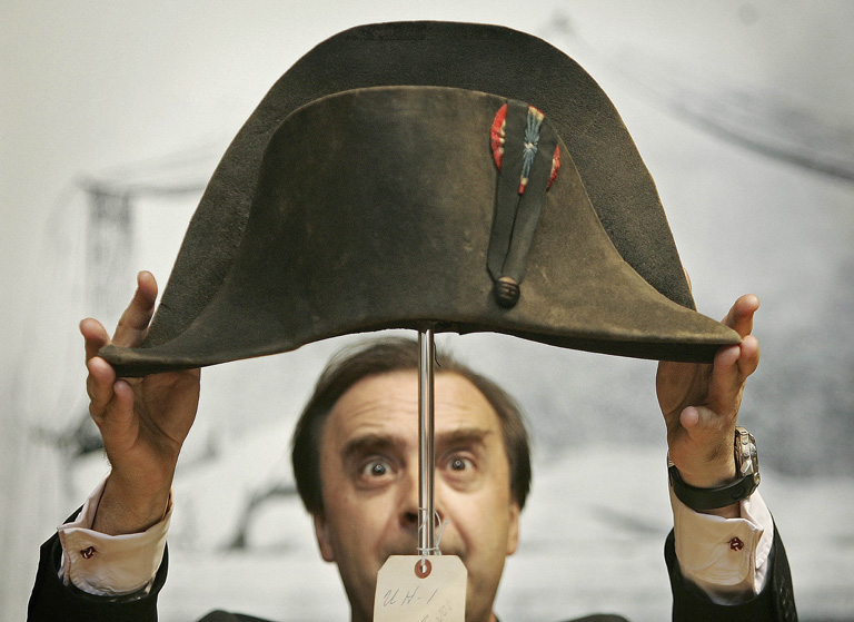 1,884 millió euróért, azaz 577 millió forintért kelt el Bonaparte Napóleon egyik fekete filcből készült, ritkaságnak számító kétsarkú kalapja Párizsban. Az aukciós ház szerint a császárnak 120 kalapja volt, de éppen az árverezésre bocsátott fejfedőt viselte a marengói csatában1800-ban. Hogy ezt honnan tudták, az rejtély, annyi azonban biztos, hogy Bonaparte mindig 12 kalapot hordott magánál, bárhova is ment. Úgy tűnik Napóleon nagy divat még ma is, ugyanis 276 millió forintért kelt el egy árverésen az a jegygyűrű, amelyet a császár ajándékozott 1796-ban Joséphine de Beauharnais-nek.
