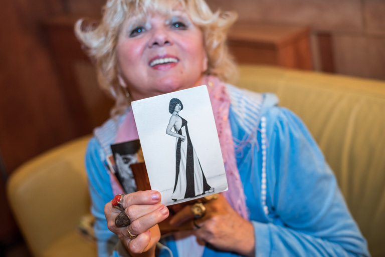 Gyöngyi az egyik fotót mutatja: a Kabarét énekli Lisa Minnellinek maszkírozva. A képen kivehetők a sötétlő foltok a neccharisnya alatt. „Én ezt az egészet mind levetettem, amikor énekeltem. Mi köze a közönségnek ahhoz, hogy ő egy szar alak?!