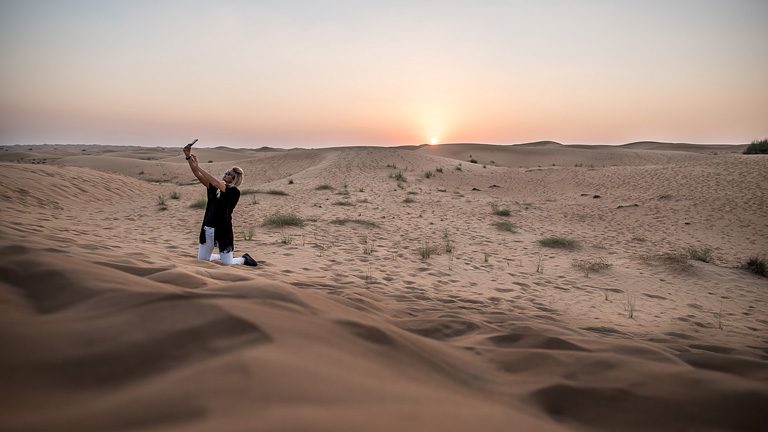 Jasper telefonján ugyanis van egy úgynevezett nagylátószögű szelfi funkció, ami nagyjából olyan, mintha panorámaképet készítenénk. Mivel a készüléknek egy kis időre van szüksége a kép létrehozásához, az alanyoknak mozdulatlanul kell várni, hogy elkészüljön a fotó.