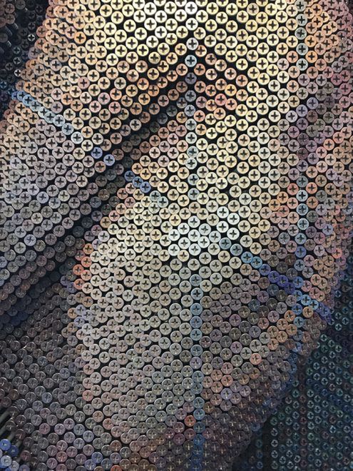 Egy-egy portréhoz Mackley nagyjából 20 ezer szöget használ fel, ami azt jelenti, hogy az alkotást komoly gyűjtőmunka előzi meg. Aztán jöhet a szögelés, ami akár több száz órát is igénybe vehet a tökéletes hatás érdekében. Mackley nem az a fajta művész, aki hirtelen felindulásból, ösztönből alkot – ez a típusú alkotói munka türelmet, koncentrálást és elmélyülést igényel. Az erőfeszítések és az idő pedig megteszik a hatásukat, a végeredmény ugyanis elképesztőre sikerül!