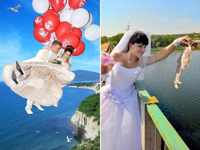 Kentaurpár és minivőlegény jetpackkel – a legbénább orosz esküvői fotók