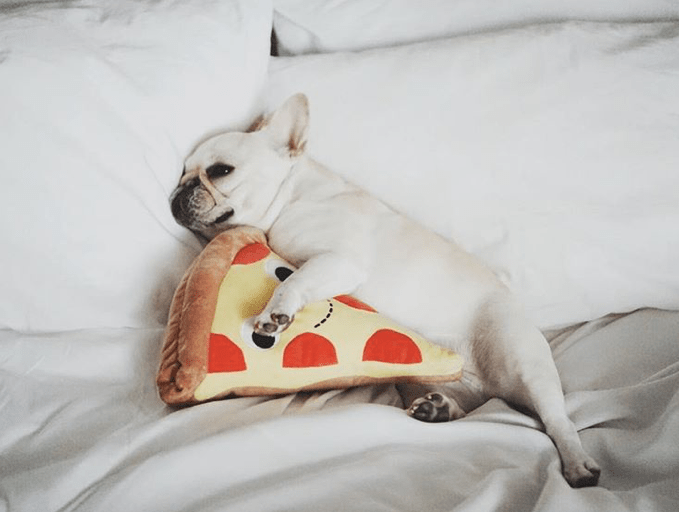 A két francia buldog egyszerűen mindig kifogástalanul mutat a csodaszépen megvilágított, pasztellben fürdőző fotókon, tök mindegy, hogy épp pizza alakú párnával vagy egy pohár pezsgővel pózolnak-e.