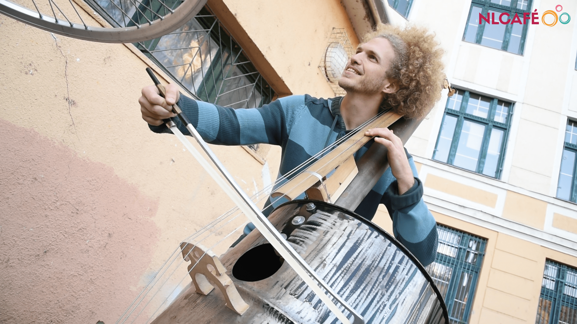 Kertész Endre két éve zenél a Bélaműhelyben, eredetileg komolyzenész, aki csellón játszik, de bármilyen vonós hangszerrel jól boldogul.