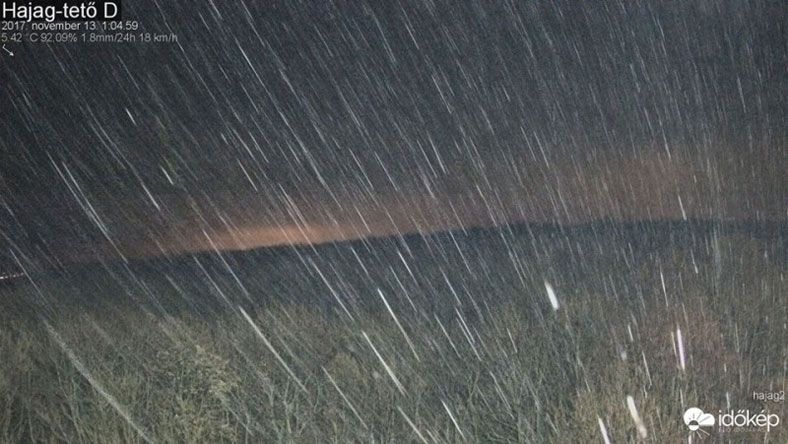 Az időkép jelentése szerint hétfő délelőtt a Bakony egyes lejtőit fedte be időszakosan a fehér hótakaró, de havazott a Kőszegi-hegységben a Hajagos-tetőn és a Nagy-Hideg-hegyen is.