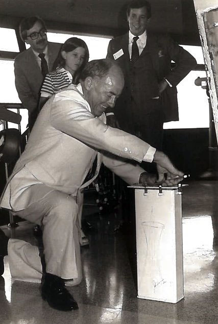 A Space Needle-t építő cég első embere, Howard Wright lezárja az időkapszulát 1982-ben (Fotó: Space Needle)