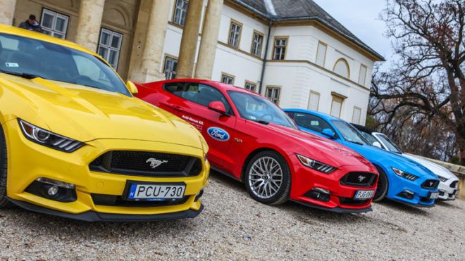 A szerkesztőségünket korábban megjárt kék Mustang is tagja volt a csapatnak (Fotó: Ford Magyarország)