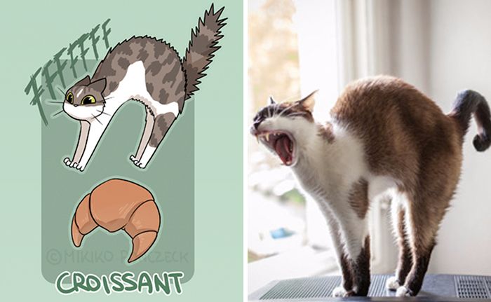 A macskák mindenféle kitekert pózokban tudnak aludni, és ha alaposan megfigyeljük ezeket a testhelyzeteket megállapíthatjuk, hogy ilyenkor rendre péksüteményekre hasonlítanak! A dolog feltűnt a német-japán grafikusnak, Mikikónak is, aki zseniális illusztrációival támasztotta alá a feltevést, hogy a macskák valójában tényleg péktermékek lehetnek.