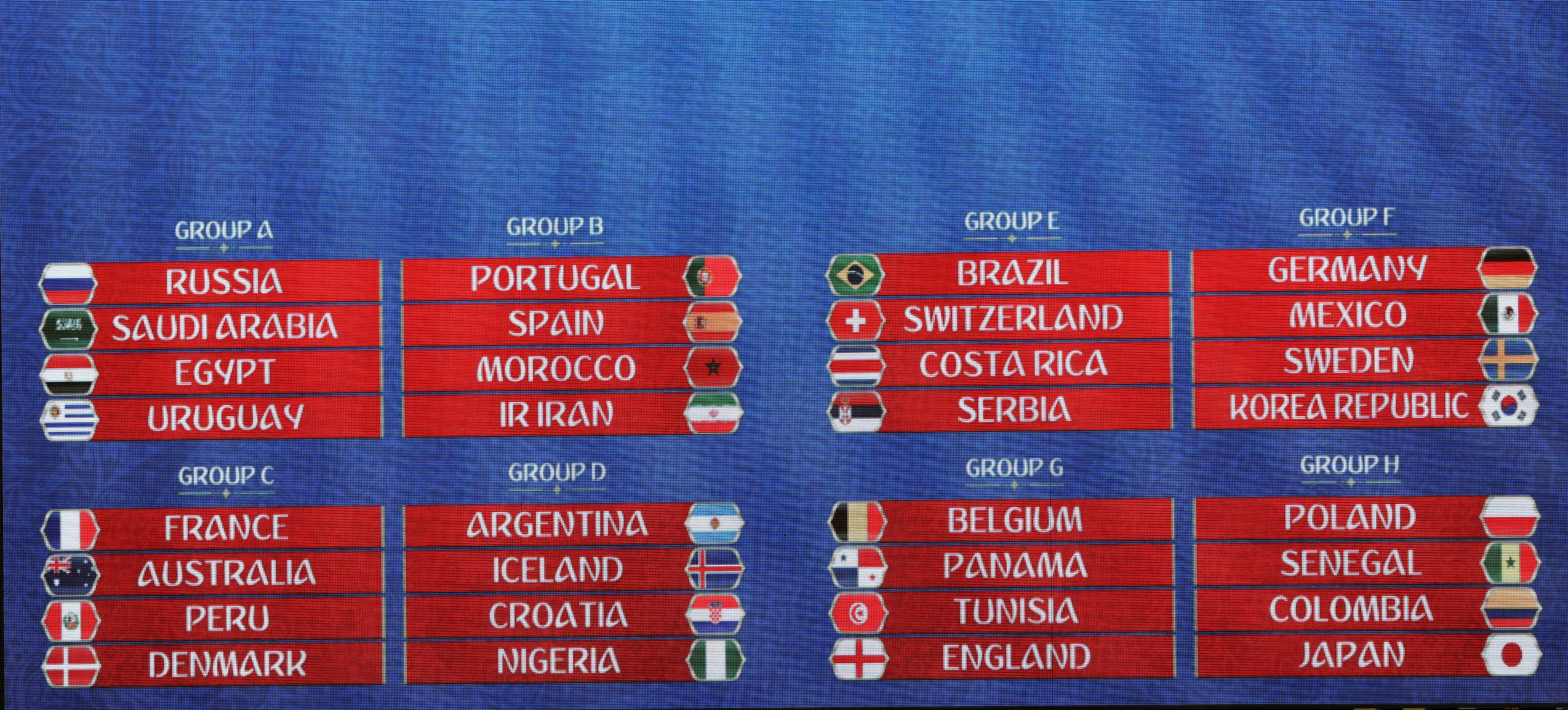 Kisorsolták a csoportokat a 2018-as labdarúgó-világbajnokságra.