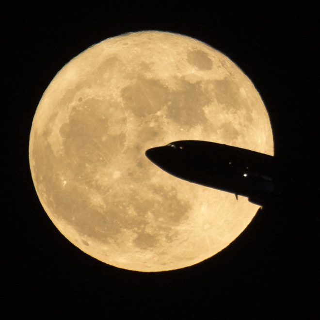 Egy repülő orra látható a decemberi szuperhold előtt (Fotó: Getty Images)