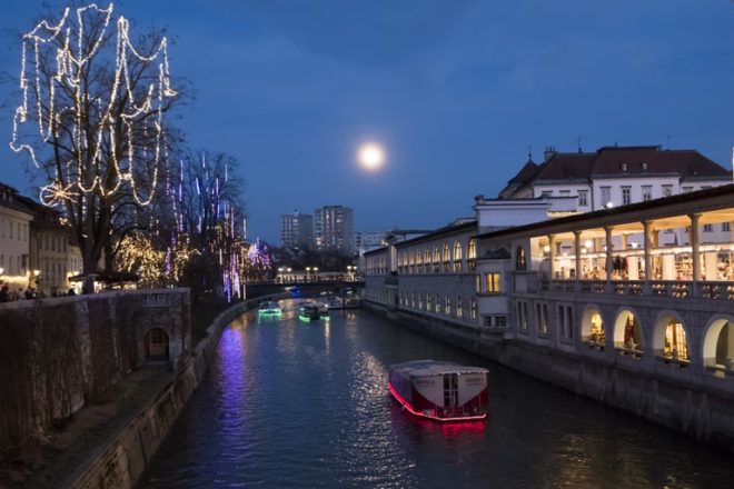 A szlovéniai Ljubljanában pedig már a karácsonyi díszkivilágítással együtt lehetett megcsodálni a szuperholdat.