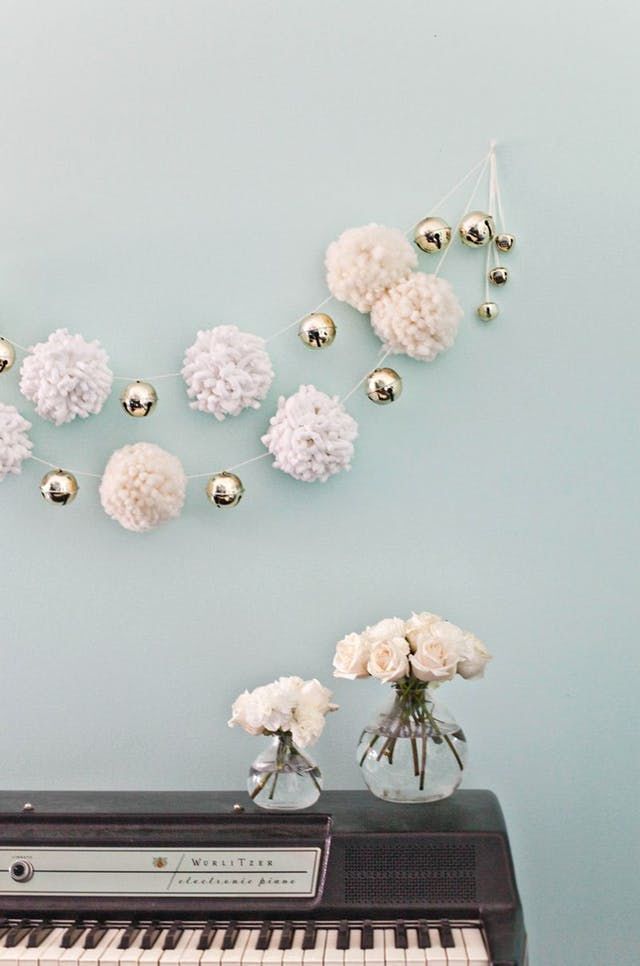 A puritánabb dekor kedvelői pedig foghatnak egy tekercs natúr csomagolópapírt, amire szépen felírják, hogy boldog a karácsony, és máris mehet a falra. Vagy bevethetjük a régi jó pompomos dekorációt, megvariálva pár karácsonyi gömbbel.