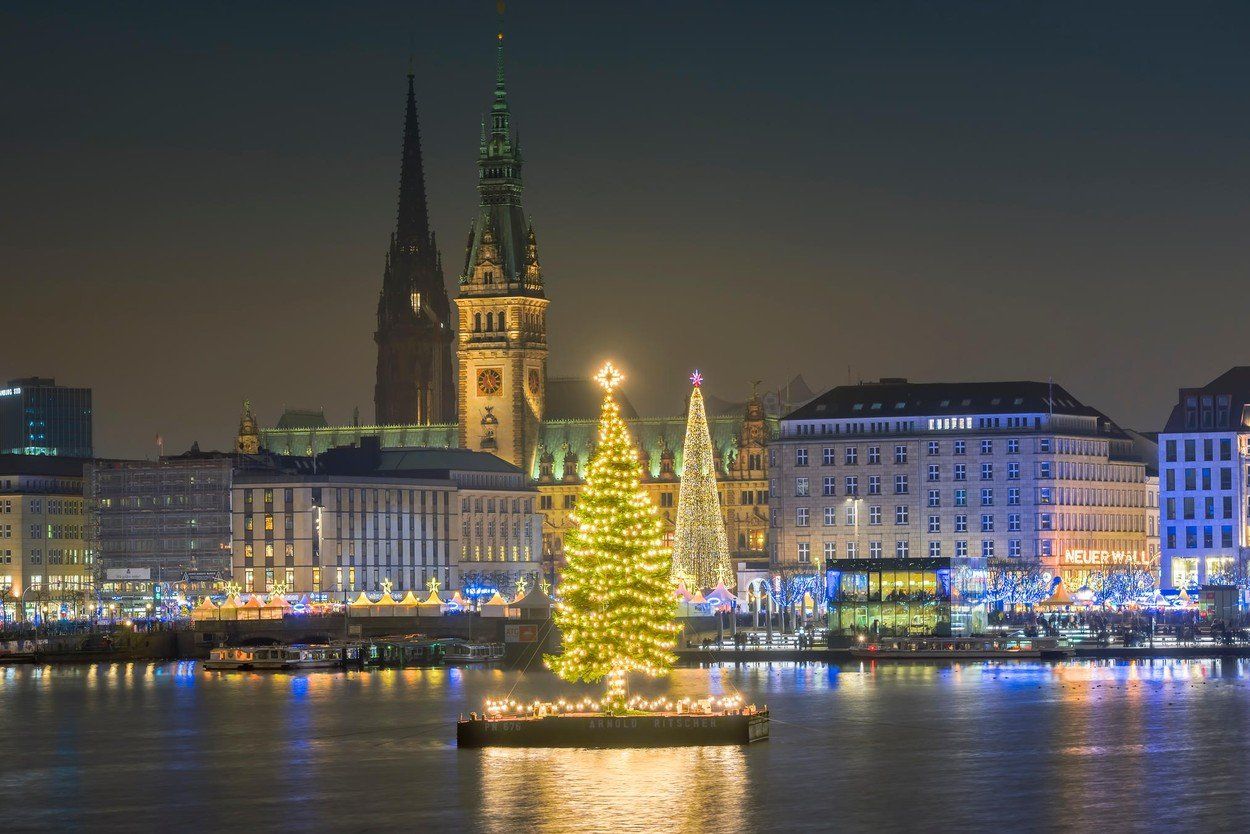 Úszó karácsonyfa az Alsteren, Hamburgban (Fotó: Profimedia, Alamy)
