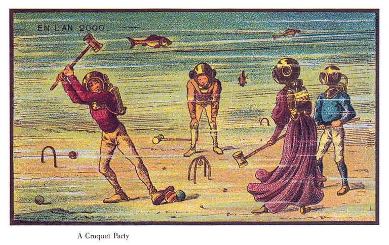 A második kép kellemes családi programot mutat be – a tenger alatt. A krokett nevű labdajátékot játszó család minden tagján a kor szellemének megfelelő, rézből készült búvársisak látható. Az sajnos nem derül ki, miért hitték, hogy erre szükség lesz 2000-ben, hiszen 1910-ben még nem igazán foglalkoztak a globális felmelegedés vagy a klímaváltozás hatásaival. De lehet, hogy már akkor is úgy gondolták, előbb-utóbb el fog olvadni a sarkvidéki jégtakaró, akkor pedig mindent elborít majd a víz.